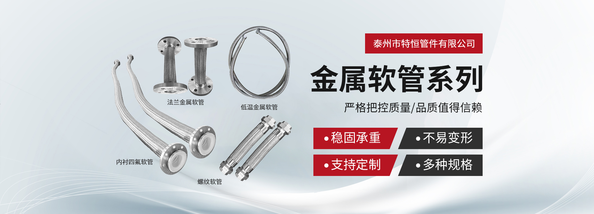 泰州市特恒管件有限公司坐落于風景如畫的江蘇省泰州市,是專業從事設計、生產金屬、非金屬膨脹節、橡膠補償器、不銹鋼金屬軟管、風門等的廠家。公司擁有各種先進生產、加工、檢測設備和強大的技術力量支持。我公司根據國內先進的加工成型工藝、科學的管理體制、先進的工裝設備不斷充實、完善質量保證體系,從而創造出高品質的產品。聚科技精英、出優質精品、品質卓越、信譽至上是我們的不懈追求。我公司愿以可靠的質量和良好的信譽,“誠信、公正、求實、創新”的經營理念與廣大用戶攜手合作,共創美好未來。我公司采用先進的標準進行設計、生產各種規格型號的補償器、金屬軟管及波紋換熱器和風門等。廣泛應用于電子、電力、核電、石化、冶金、儀表、儀器、航天、航 空、船舶、碼頭、建筑、食品、供熱等行業,曾先后為多家大型企業提供各種型號的優質補償器,產品遠銷國內外。我公司擁有一批專業技術人員和優秀的售后服務人員,以確保客戶在選型號以及客戶在產品安裝、運行中出現問題時可以得到及時、專業、有效的處理,并為客戶在設計、安裝、運行中提供專業的技術指導。